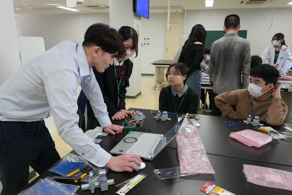 東京エレクトロン宮城のチームにお越しいただいて、興味深い半導体製造に関するお話を伺ったり、半導体を用いた回路の組み立て実習・実験を行いました。