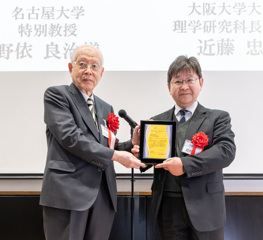 表彰式が2026年1月26日(月)に、東京大学生産技術研究所コンベンションホールにて開催されました。SEEDSプログラム立ち上げメンバーの一人である近藤 忠 教授・大阪大学理学研究科長に野依良治 名古屋大学特別教授より記念の盾が授与されました。